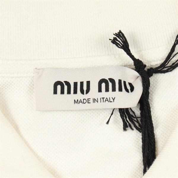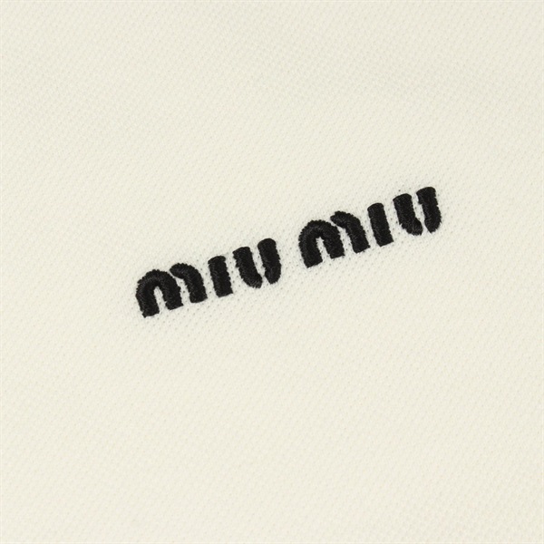 ミュウ ミュウ コットンピケ 長袖ポロ ロゴ刺繍 ポロシャツ 衣料品 トップス レディース
