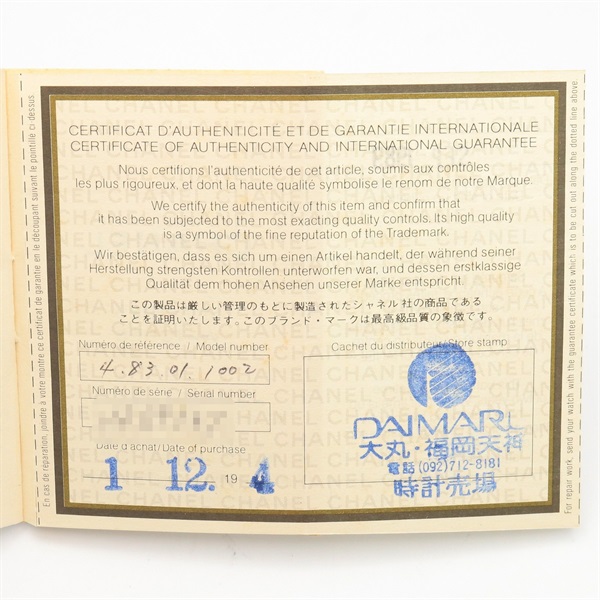 シャネル プルミエール S 腕時計 時計 レディース H0001