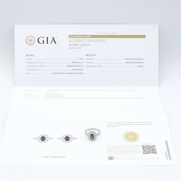 Pt900プラチナ ダイヤモンド アレキサンドライト / アレキサンドライト 0.95ct / ダイヤ 1.03ct